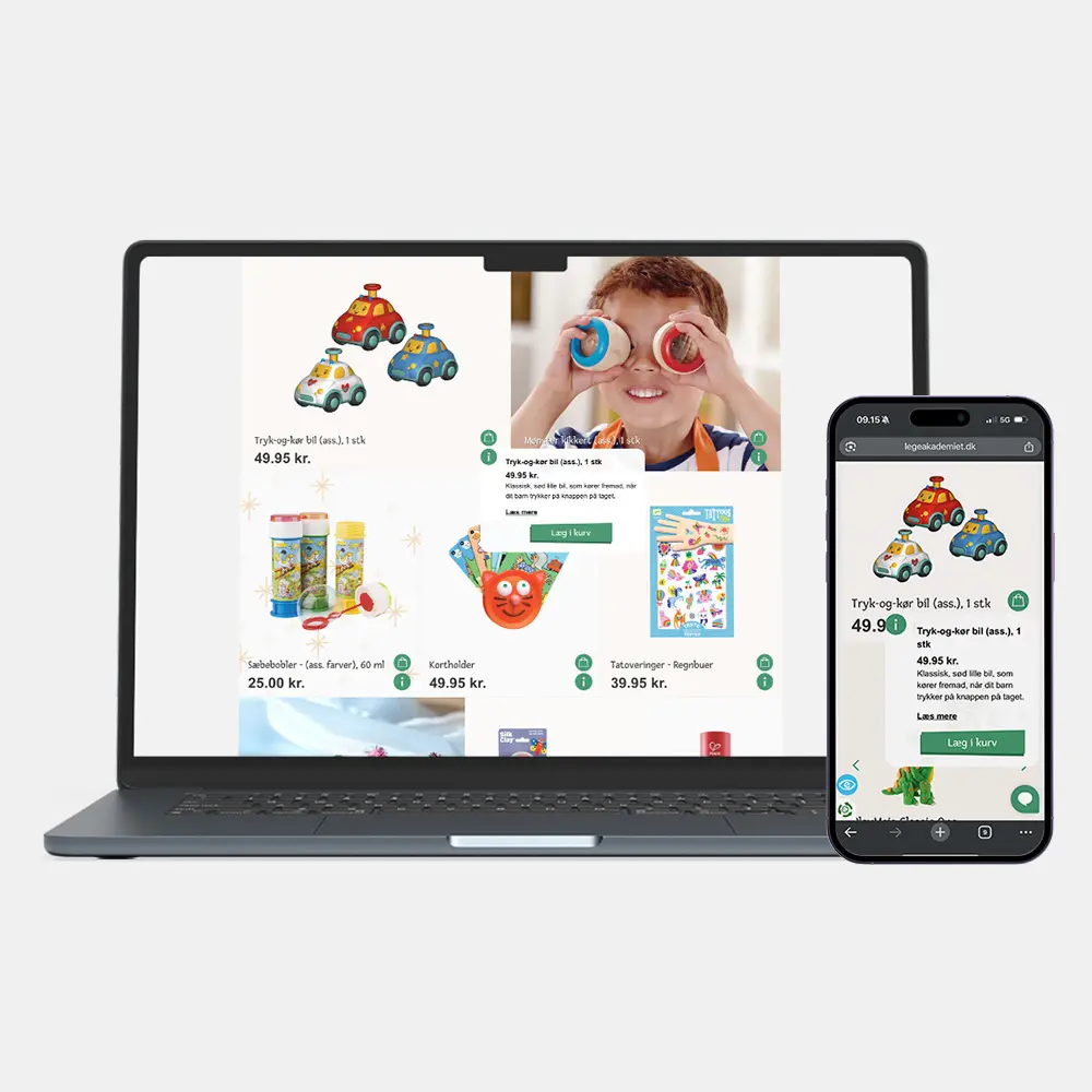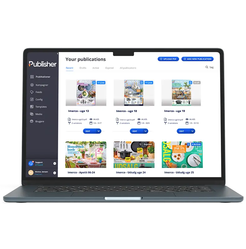 Publisher integrerar och hämtar automatiskt data från ditt feed – såsom namn, pris, rabatter och bilder – och gör dem tillgängliga för dig i vår Live Editor.